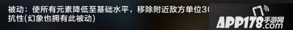 技能介绍:使所有元素降低至基础水平,移除附近地方单位的副本物理护甲和部分魔法抗性(幻想也拥有此被动)