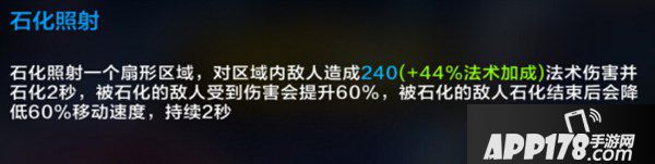 点评:美杜莎的大招超强,是团长中极强的控制技,最近新出的英雄似乎都有一手很强团控,似乎有点单一了,美杜莎也不例外,2秒的石化+2秒的60%减速,可以让敌人吃到队友的大部分技能,在诗画中敌人将会额外承受60%的伤害,很容易被集火秒掉。