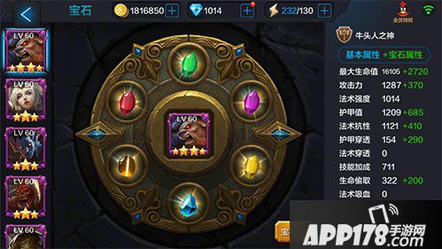 牛头人之神为团队中的前排肉盾英雄,牛头需要突入敌方阵容中控制对方英雄,因此必须增强自己的生存能力,保证突入人群后不会被对方直接集火秒掉。所以首推宝石就是生命宝石,增加牛头的生命值;之后是护甲宝石,增强牛头的护甲以及法抗宝石,增加牛头的魔抗,减少法师对其的威胁。剩下的宝石,可以考虑增强牛头的输出了,搭配攻击宝石及护甲穿透宝石,以及生命偷取宝石,增强牛头的续航能力。