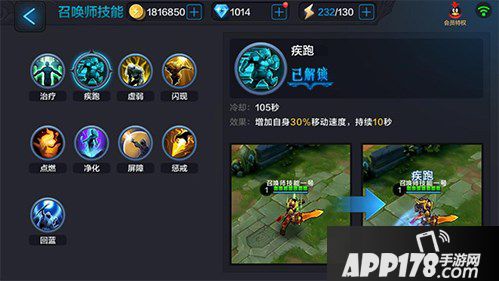 疾跑:疾跑和闪现有异曲同工的效果,唯一的差别就是闪现是定向闪现,必须是特定的方向,而疾跑可以控制方向,无论敌方是怎样的逃跑路线,都可以进行追踪,所以在我看来,闪现是逃跑神技,而疾跑是追踪神技。