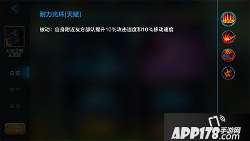 耐力光环(被动):自身附近友方部队提升10%攻击速度和10%移动速度;