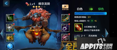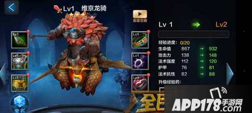 维京龙骑所需要升阶装备使用的材料主要来自闯关掉落,与升级顺序一样,同样装备阶级越高属性越强,英雄战斗力也越高。
