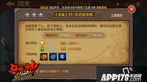 通关奖励:401金币 2572经验