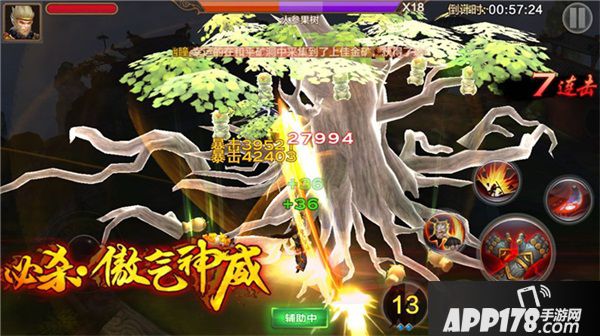 在《全民斗战神》的背景故事中,五庄观的人参果树因吸取无数婴儿的血肉,方才成长成这般巨大,结出的果实也因此有了长生不老的效果。试炼之地“人参果树”玩法需要玩家在60秒内完成击杀这棵妖树。在挑战过程中,人参果树每隔一段时间会降下人参果,玩家如被砸中将会陷入短暂晕眩,且人参果树本身的血量也相当厚,在三大试炼中挑战难度最高,推荐使用单体爆发较高的罗刹或者神将来完成这一挑战。