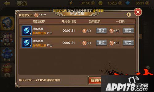 宗派竞拍玩家可以竞价获得道具,谁出的忠义币高就归谁,而这些忠义币也会平均分配到其他成员手里,非常人心化的设计,是忠义币的流入和流出都在宗派的圈子里,保证了大家共同的收益。