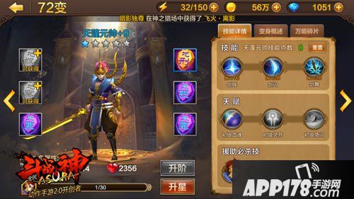 天蓬元帅和齐天大圣一样,培养起来都是极为困难的,不但升星所需的碎片数量远远高于72变中的变身,天赋书也只有通过活跃商店才可以获得。