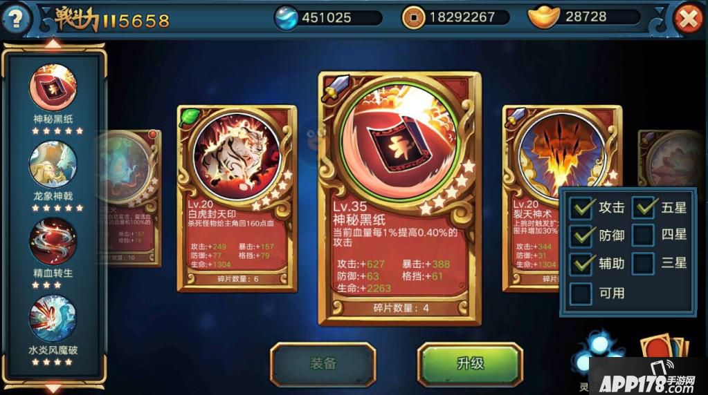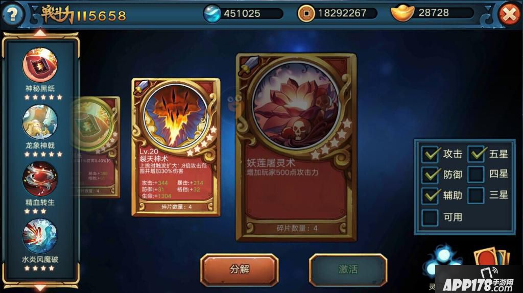 这类灵决表面上看,加成挺大的,但是以面板算,只是属于前期过渡使用,成长性有性(论价值,其实算不上5星灵决)也就是说,如果说加成小于神秘黑纸,那么,该灵决才会发挥价值。更多的只是神秘黑纸灵决的铺垫灵决,成长有限,没有必要追求极致。(也是唯一没有激活的灵决)