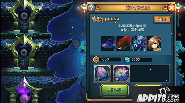 层数越高,难度越高,奖励也更丰富,玩家也可更换怪物,减小通关难度,当通关后玩家可通过重置,重新挑战。