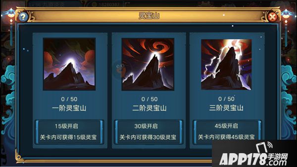 根据玩家等级的不同,开放不同的等阶灵宝山。