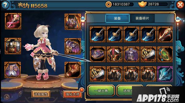 游戏装备分为绿色,粉色,橙色,类别的不同决定着属性的差异。