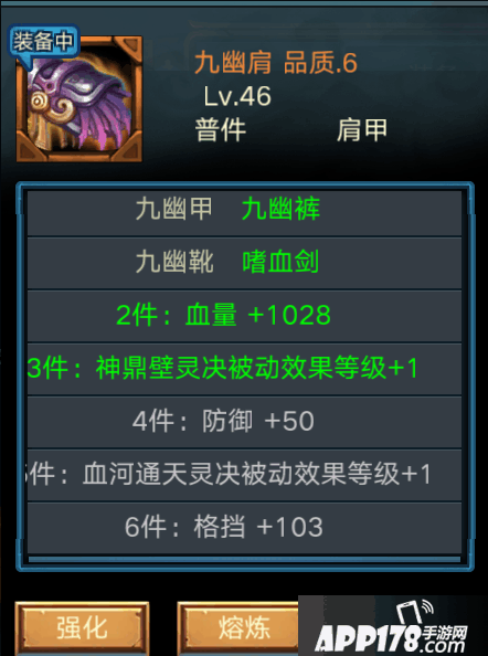 九幽套属性加成偏防御类。和玄守套装(橙装)各有特点。