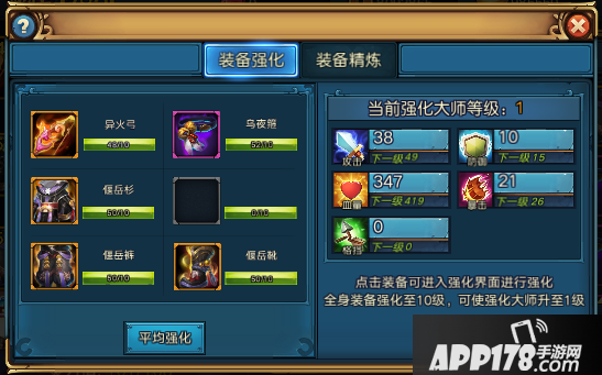 提升篇:强化大师是一个很有趣的东西,当玩家的各项维度有一个统一的提升时,会总体有一个附加的提升,所以要好好利用这一点,将资源平均分配到每一个装备的强化中,不要只针对某一个装备浪费过多资源~