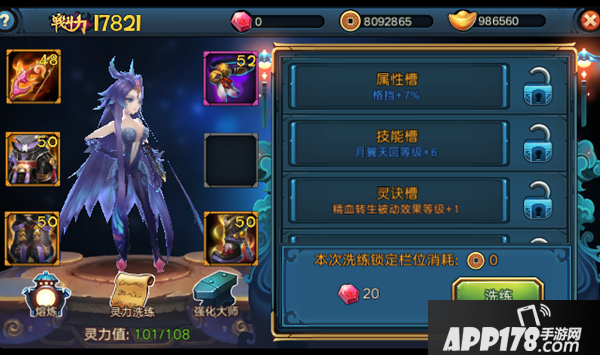 上面图里那个红色的框就是灵力洗练,我理解的意思大概是这样: