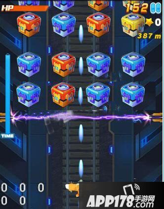 游戏开局后,方块会自动向下移动。可直接打掉方块也可打掉某些方块,凑成一排颜色相同的方块,可以快速整排自动消除,还可延长游戏时间,获得更多得分的机会。时间条走完或战机死亡则游戏结束。