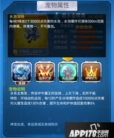 宠物方面,推荐Kitty·企鹅和避水金睛兽。选择这两个宠物,主要是出于他们的破口能力考虑。Kitty·企鹅的梦幻泡泡可包裹敌机,一击秒杀回血,可以快速将怪物解决掉。而避水金睛兽的水系特性与水泡消除技能双重叠加,可清除附近范围内的弹幕,很大程度上简化了我们的操作。让怪物的击杀与连爆更加稳妥。