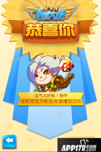 后来我仔细研究了小技巧提示,天神祝福新奖励心灵之火,让你的战机更强更耐打。心灵之火让我们的战机更强,那就应该是给我们提供攻击力加成。那么更耐打是什么呢?因为全民飞机大战中没有防御力这个说法,所以耐打一定是生命值的加成。所以心灵之火应该是对战机攻击力和生命值同时加成的buff!比如我抽到的战机攻击力和生命值增加20%就应该是心灵之火。