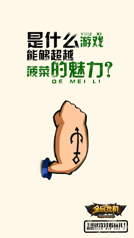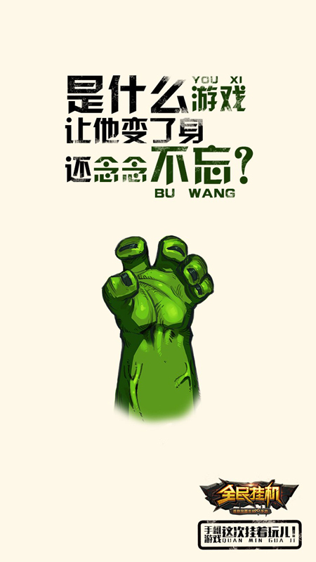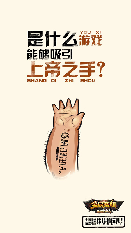 挂钩手系列海报分别描绘了不同“英雄”人物手臂的挂机状态。海报推出之后,获得玩家和行业的一致好评。《全民挂机》突出的个性就是给玩家带来“好玩不累”的游戏理念,一款挂着也能玩的手游,真正做到让玩家在尽情畅享游戏乐趣的同时,还不受任何时间环境网络等各种因素限制。不一样的挂机手游,带来不一样的挂机体验。