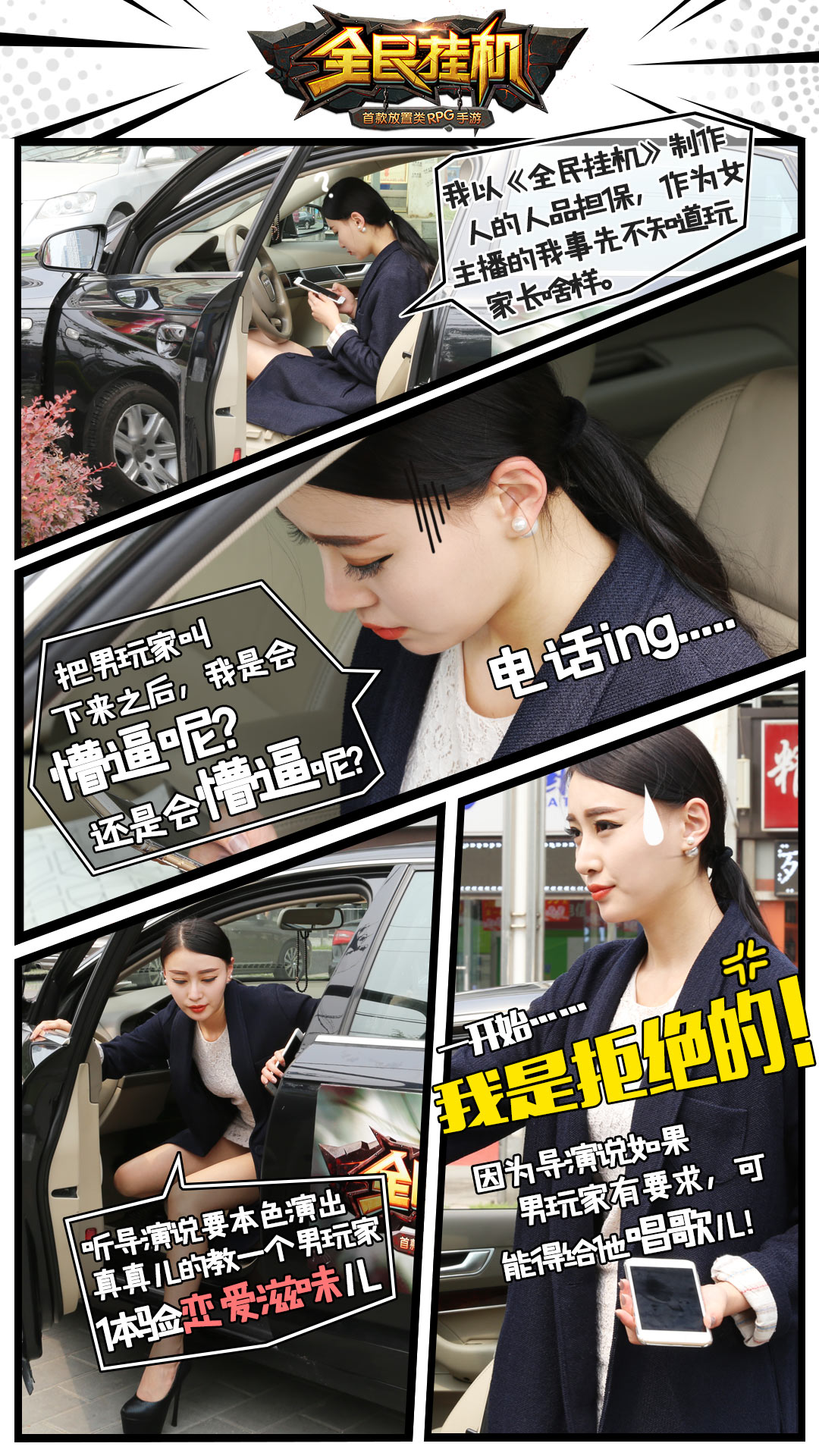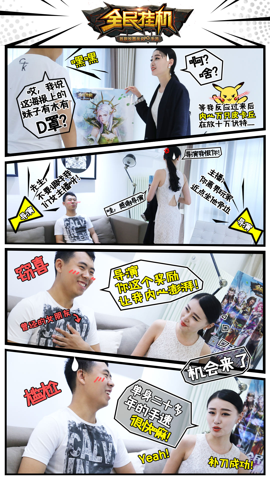 在活动执行同学的强烈要求下,《全民挂机》官方把其中一个女主播当天的遭遇用第一视角真人四格漫画的形式呈现出来。据介绍,这个版本的漫画得到了玩家的首肯,玩家称自己这次豁出去了。第一时间看完正版漫画后,小编也不禁感慨,这位女主播也真是人美、有才、配合度高啊。