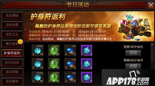 活动内容:活动期间,提高护身符等级可领取丰厚大礼。