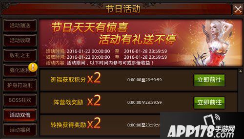 l 节日BOSS100%掉落:高级声望、高级成就、五响炮竹*1、四响炮竹*1、进化晶石*5、