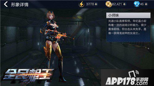 在这款游戏中每个角色都有自己独特的人生简历,同样小师妹也有让人敬佩的简历:光速小队的首席军师,唯一获得龙战甲的女战士。首席、唯一这两个词可不是随随便便一个人就能佩戴的起的,这需要足够的实力。这么一个实力强大的小师妹,我们在使用它的时候,也是让自己倍感自信,不过手残党还需继续努力,别让她在你手中受辱、蒙尘。