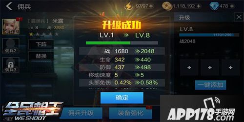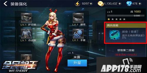 升级需要佣兵经验卡,而在小编看来这个升级同样不合理,因为佣兵经验卡太难获取,想必大家也有同感,不过以小编长久游戏了来看,升十级就差不多了,毕竟对佣兵来说,弱的我们杀了,强的我们也顶不住。佣兵的存在大多数情况是看中了她的技能。那么在技能上,她除了有加快换弹速度的武器之外,同样可以花钻石领悟一个技能,这个技能就要看运气了。