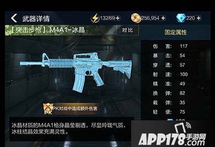 在和普通M4A1的对比下,冰晶系列在伤害,暴击,穿透射速上都没有改变。除了精准下降了外,其它都有所提升。在其他属性不变化的情况下,换弹速度和载弹量都有所提升。这些量的改变在对战中往往能够起到关键性的作用。