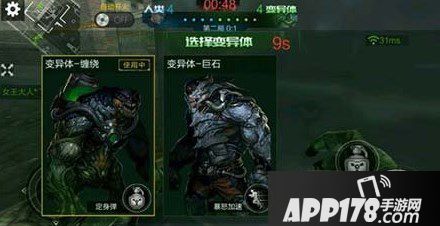 先介绍变异类,有三种变异,一个是母体,两个是小喽啰变异,母体的血量4368(被选中),而小喽啰的血量只有2400。母体的技能,是无敌,就算火力太强也挡不住母体的技能,只能等到母体的技能时间过后,再输出火力。而两个小喽啰的技能,缠绕的定身弹优点人类被击中,速度减慢,而且不能开枪。缺点就是直线抛,人类可以走位左右,完全可以躲开。巨石的暴走优点完全可以追上人类。抓人速度快。但是缺点就是当人类靠近时候,开了暴走,几率抓不到。有点不太把握好。巨石可以完全单挑一个英雄。只需要加上暴走技能。转圈抓英雄。让英雄完全砍不到。