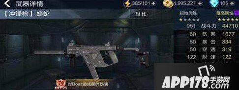 这把蝰蛇的初始战力为951,与先锋蝰蛇相比差了一百多,但高属性的战力可是差了将近一万,有点同比例减少战力的意味。在属性上,除了伤害和暴击的可成长性属性差距外,在穿透、射速、载弹、轻便上也要差上不少。综合起来最后战力就差了一大截,当然主要还是伤害的差距太大。毕竟这些闯关和挑战之类的还是拼伤害决胜负。
