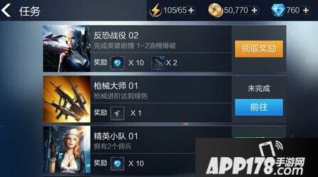 主线任务是跟着玩家一起成长的任务,很多任务到达了一定阶段之后就可以自然而然的完成了,当然如果你想要在新手阶段将自己的等级、战斗力与好友拉开,主线任务绝对是你要去完成的,因为在主线任务中有很多枪械强化的零件只要完成任务就可以获得。