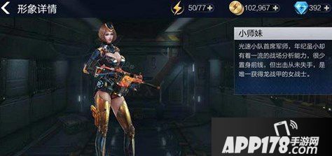 在这款游戏中每个角色都有自己独特的人生简历,同样小师妹也有让人敬佩的简历:光速小队的首席军师,唯一获得龙战甲的女战士。首席、唯一这两个词可不是随随便便一个人就能佩戴的起的,这需要足够的实力。这么一个实力强大的小师妹,我们在使用它的时候,也是让自己倍感自信,不过手残党还需继续努力,别让她在你手中受辱、蒙尘。