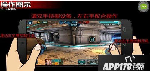 在游戏屏幕的左下方是控制角色的虚拟摇杆按键,而游戏屏幕的右下方则是控制枪支准心的瞄准方向以及射击按键,同时右侧还是控制人物视角的转向。
