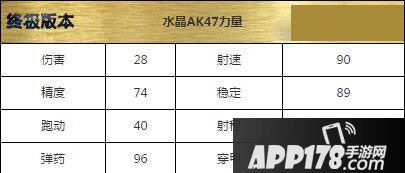 全民枪战水晶ak47终极在桃战模式伤害多少?全民枪战水晶ak47升级到终极好用么?今天APP178手游小编给大家带来这款游戏中ak47升级到终极时候的一系列数据,希望大家喜欢!