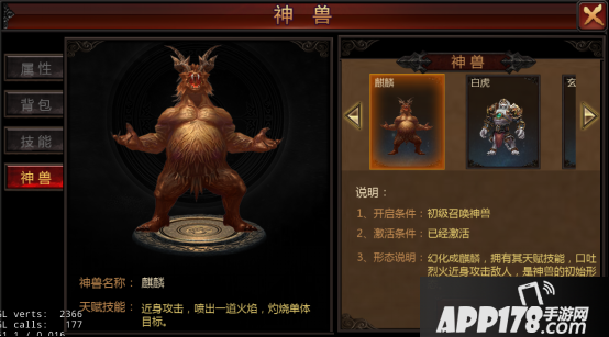神兽麒麟:麒麟为近身攻击,喷出一道火焰,攻击单体目标。
