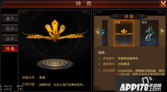 神兽朱雀:远程攻击,吐出火鸟攻击单体目标。