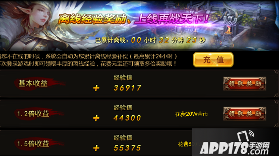 相信很多玩家因为工作、学习的原因,有时候会没有时间挂机练级,为此我们特地推出了离线经验福利。当您离线后,系统会自动为您累计离线经验补偿,当你上线之后便可以领取。这里要提醒大家的是,离线经验最高可累计24小时,所有最好是不要超过24小时哦,如果确实很忙,可以花1分钟时间上线领取经验后再下线,这样系统又会开始帮您累计离线经验补偿。