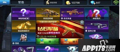 钻石军备就是以前的十连抽,目前打折抽取一次紧要1400钻石,也就是一把S级枪械的钱。钻石十连抽想必大家都是冲着非卖品枪械去的,也就是M4A1-贪狼、RPK-27和巴雷特M95。当然这三把枪械获取几率很小,直接抽到枪械的几率也就2%,十连抽也就是20%左右的几率,不过好在雷神和朱雀都是非常值得培养的枪械,抽到这两把枪械就已经不亏了。当然佣兵什么全当附赠。