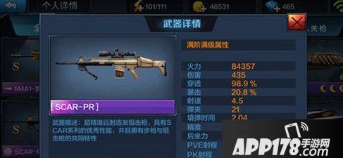 SCAR-PR是一把半狙击半突击的枪械,伤害比突击步枪略高弹道也很精准,并且也没有很强烈的枪口光芒,是一把既有伤害也非常适合黑夜激战的枪械,既能点射也能当成单狙使用。