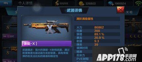 激能-X是唯一一把无限精准和没有后坐力的枪械,同样也是唯一一把可以在10秒内无限弹夹的枪械,不过虽然火力有8.6W伤害不过PVE的伤害没有8.5W的G36E要高,毕竟精准和弹夹的优势太大,伤害上自然低于其他突击步枪。