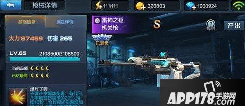 雷神的属性真的很一般,首先火力8.7W和其他机关枪相差不大,其次7的射速是机关枪里最慢的,但是为什么射速为7?因为雷神的枪械技能实在太过强大,如果有新手玩家要培养机关枪一定要培养雷神。