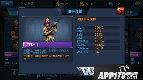红桃K不用多说每个人的第一个佣兵,红桃K虽然属性较低,不过被动技能15%的伤害对于整个团队的提升还是很大的。特别对于新手玩家钻石用来培养枪械,突击兵就用红桃K也是非常不错的选择。