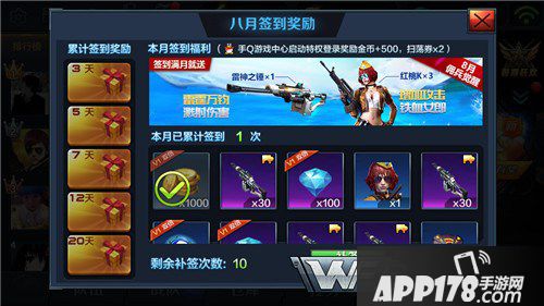 在8月签到里签满可以获得一把紫色品质的雷神之锤和3个蓝色品质的小师妹。对于新手来说无论是枪械还是佣兵没有比8月签到更给力的了。老司机如果雷神没有升满的等于节约了1000多钻石也是非常不错的。