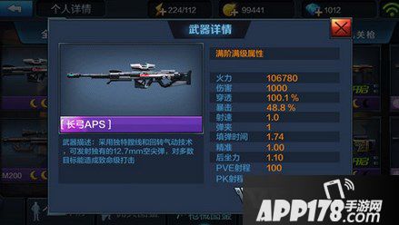 在PVP里长弓APS是目前第一狙击枪,也是跑狙党上分最快的枪械。平民玩家来说赤炎朱雀也是完全足够使用的,当然喜欢连狙的玩家也可以挑选不同的狙击枪。
