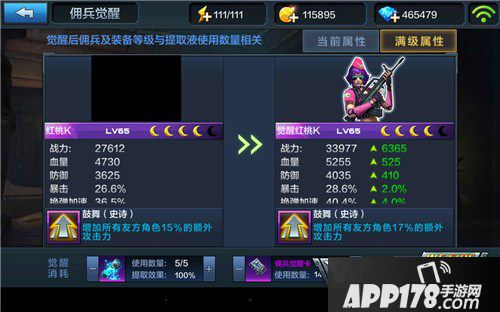 对于还在使用满级红桃K的玩家,觉醒是最好的选择。当然没有培养红桃K的玩家不用刻意为了觉醒去培养,相信以后会有更多佣兵开启觉醒。