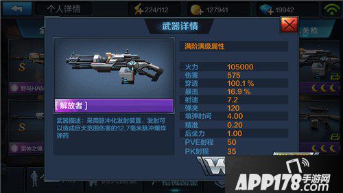 解放者火力为10.5万,在机关枪里属于中等偏上,相对于雷神高出了近2万。在伤害上575的数值在机关枪里属于顶级水平,不过解放者7.2的射速和精准度都不适合PVP模式。从属性上很直观的可以发现解放者是雷神的加强版。