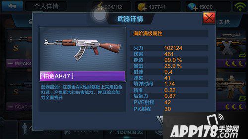 在4V4地图普遍距离较长,使用突击步枪机关枪没有1V1小地图那么好用,不过由于敌人较多使用起来也是可以的。这里推荐铂金AK47,欢乐战场狂轰滥炸主要靠道具输出枪械只是配角而已。