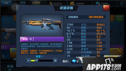 激能是罪被高估的枪械,虽然在精准度上无可挑剔,激光武器没有弹道。同样激能的缺点也很明显就是伤害不足,特别在PVP模式里激能-X的伤害仅为同类突击步枪的60%。再加个上激能-X也是一路走低,目前只要980钻石,不过性价比还是很一般。