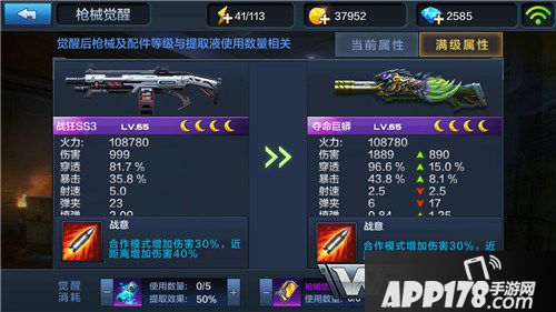 战狂SS3觉醒比亡命游侠还要亏,一样的枪械技能,用射速换伤害等于没有变化,并且SS3售价1680钻石。价格技能都一样的情况下觉醒就更不值得了。