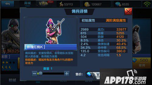 玫瑰红桃K是红桃K的觉醒版,佣兵技能上红桃K是最给力的佣兵,直接增加15%的伤害,相当于PVE模式全队伤害加成,现在版本玫瑰红桃K是绝对可以使用的,这里推荐大家培养玫瑰红桃K。