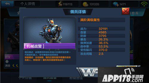 机械战警能为主角提供6秒的保护,虽然不是无敌但是能抵挡弹道攻击,机械战警提供保护之余自身也不会吸收伤害,这点比探险家要好,不过面对BOSS没有一款佣兵比探险家更好用。